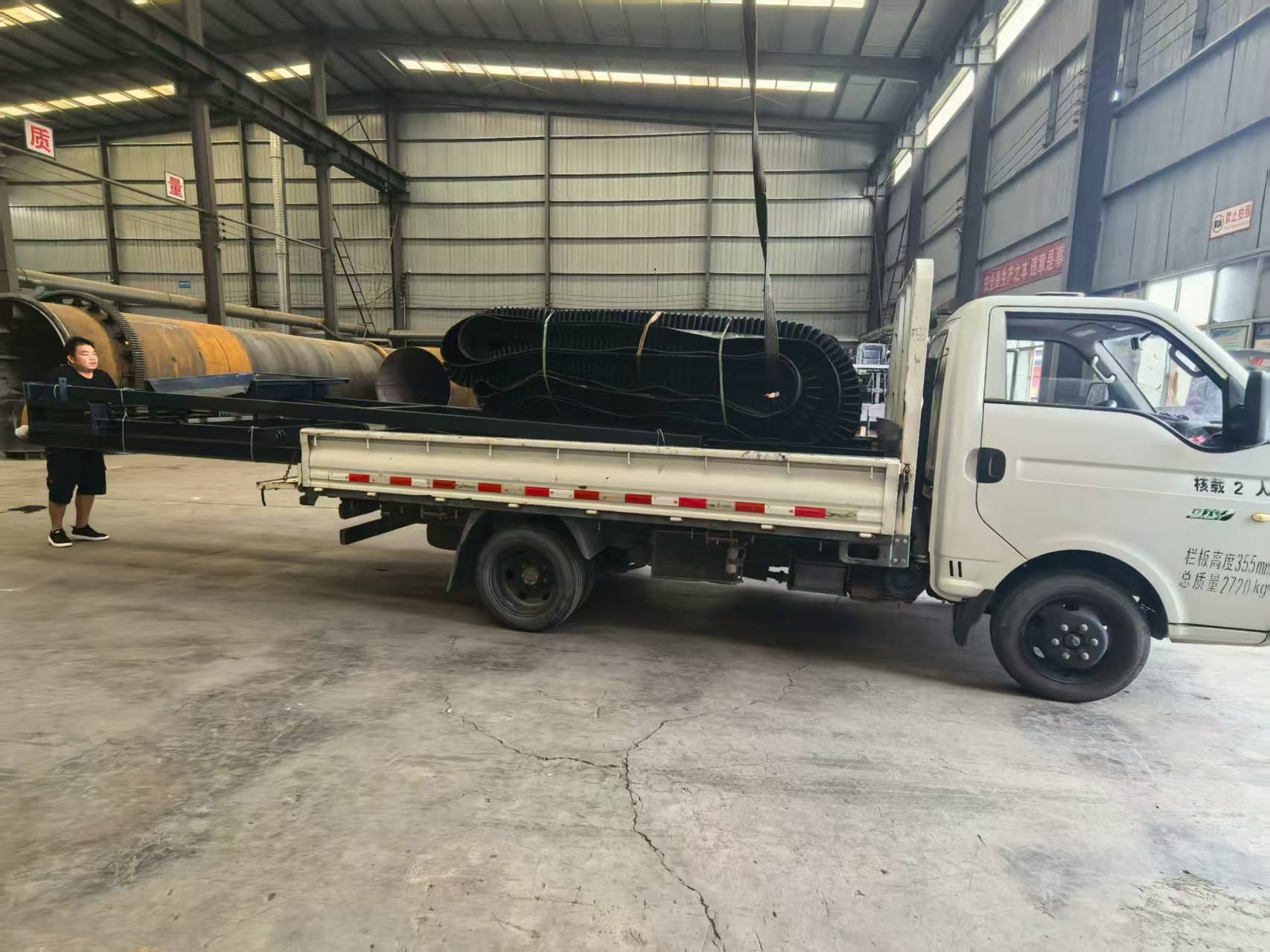 有機肥大傾角皮帶輸送機發(fā)貨現(xiàn)場
